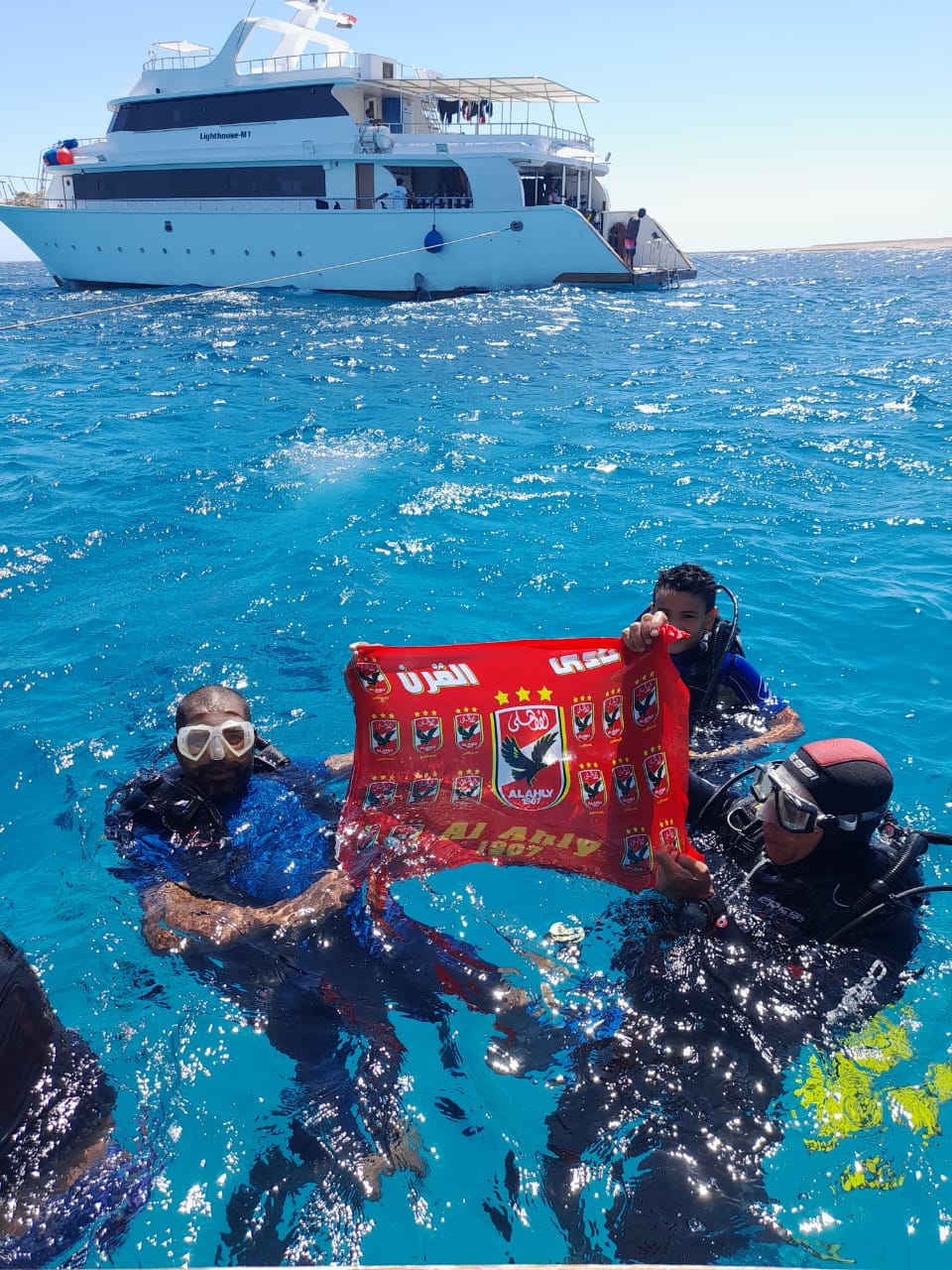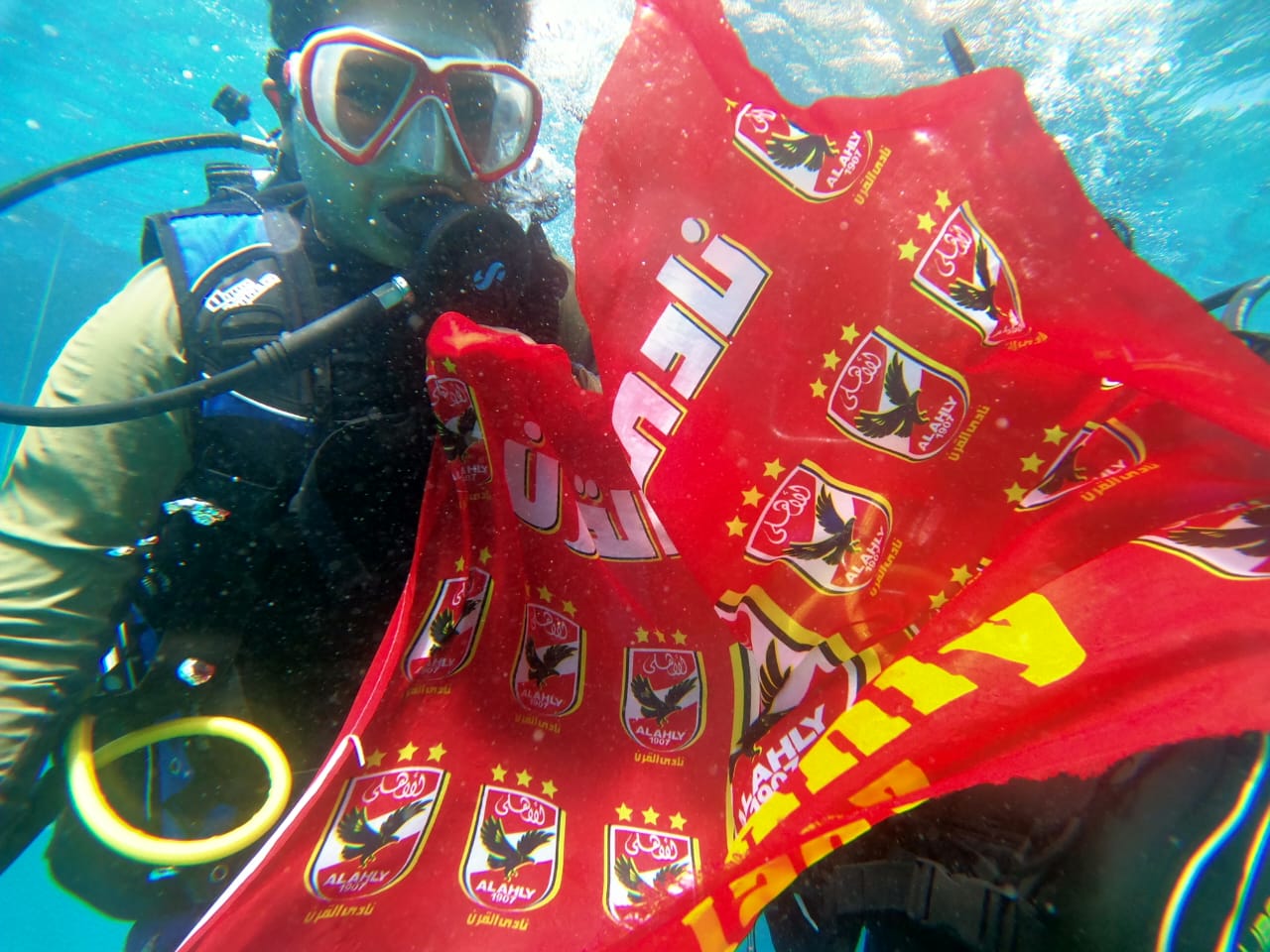 واضاف  اليوم الخميس ان عدد من السياح الأجانب حملوا علم الأهلي أثناء الغطس في قاع البحر والتقطوا عدد من الصور التذكارية تحت الماء تيمنا بفوز النادي الأهلي.