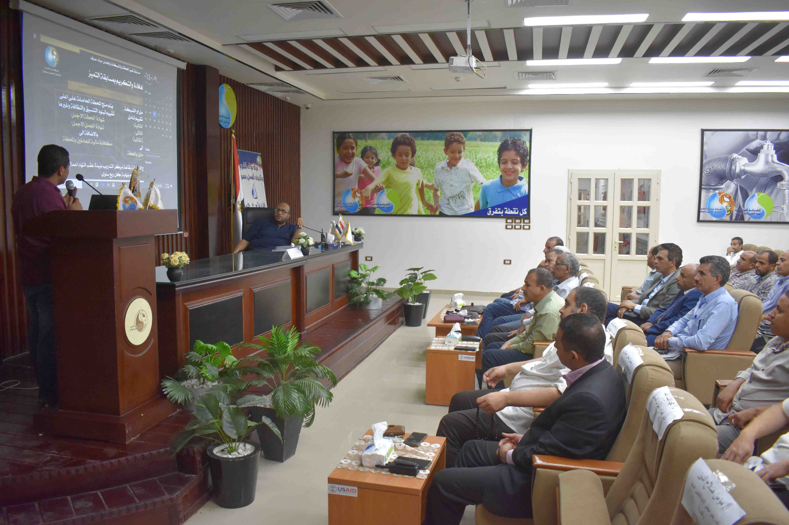 واشار رئيس مياه سوهاج انه تم عرض موقف فاقد المياه بجميع أفرع الشركة والإجراءات التى اتخذتها الشركة للتحكم وتقليل فاقد المياه وشدد رئيس مياه سوهاج على ضرورة الالتزام بوسائل السلامة والصحة المهنية والتدريب المستمر للعاملين على كيفية التعامل مع غاز الكلور والدخول للاماكن المغلقة والدفاع المدنى بهدف الحفاظ على حياتهم وتامين بيئة العمل.