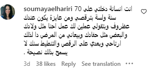 إلا أنها تفاجئت برد فعل عنيف من المتابعين، وانتقدوها شر انتقاد، وسرعان ما انهالت التعليقات السلبية عليها، والتي جاءت كالآتي: " توبي يا فوفا، توبي وارجعي لربك أنتِ إنسانة زي العسل حرام عليكي اللى بتعمليه بنفسك ورقص وأشياء حرام"، "مفيش مانع تتمتعي بدنيتك.. بس ما تنسيش الآخرة.. ربنا بينبهك لأن قلبك أبيض.. اعملي لآخرتك وصلي وتوبي.. مش لازم عري ورقص.. خلاص شبعتي منهم.. اذكري الله وصلي وتصدقي وعيشي حياتك بردو سافري والبسي واتبسطي"، "أنت إنسانة دخلتي على 70 سنة ولسة بترقصي ومش عايزة يكون عندك غضروف".