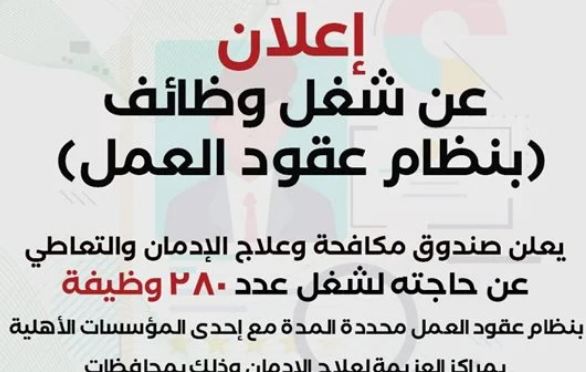 وظائف خالية بصندوق مكافحة وعلاج الإدمان.. اعرف الشروط