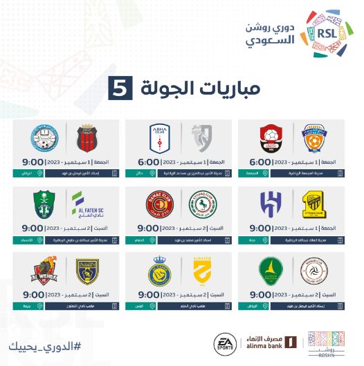 مواعيد مباريات الجولة الخمسة الأولى من الدورى السعودى