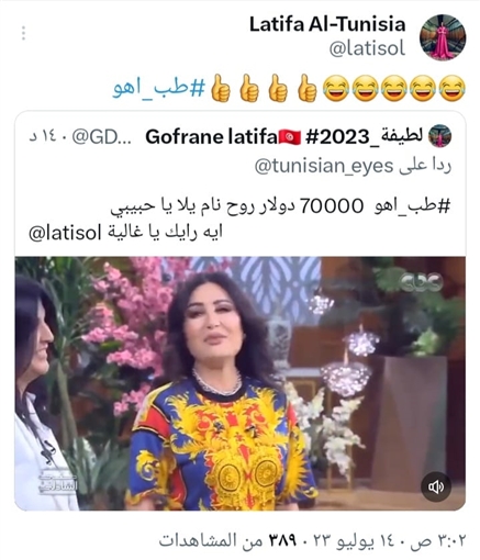 تصدر اسم الفنانة لطيفة، مواقع التواصل الاجتماعي بعد حلولها ضيفة  في برنامج معكم منى الشاذلي، الذي يعرض عبر قناة cbc، وكشفت المطربة التونسية أسرار لأول مرة وعن بداية مشوارها الفني، ولكن الأمر الذي أثار تفاعل الجمهور هو ظهورها ببدلة ظهرت بها قبل 30 عامًا في فيديو كليب "بحب في غرامك".