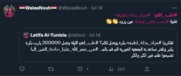 تفاعلت الفنانة التونسية لطيفة مع الفكرة، وقامت بنشر المزاد عبر صفحتها الرسمية على موقع تويتر، ودونت هشتاج "طب اهو"، ليشارك جمهورها بكثافة، إذ قررت أن تتبرع بالمبلغ للأعمال الإنساني ودعم عدد من الجمعيات الخيرية، إذ كتبت عبر صفحتها على تويتر: "تفتكروا ‎مزاد بدلة لطيفه بكره يوصل لكام؟، "‎طب اهو"، الليله وصل 200000 يارب بكره يكبر ونقدر نساعد به الجمعيه الخيريه اللي فى بالى".