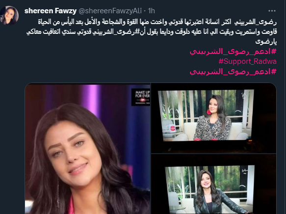 وعلق المتابعون على اختفائها المفاجئ قائلين: "رضوى_الشربيني أكتر إنسانة اعتبرتها قدوتي وأخدت منها القوة والشجاعة والأمل بعد اليأس من الحياة، قاومت واستمريت وبقيت اللى أنا عليه دلوقت ودايمًا بقول إن #رضوى_الشربيني قدوتي سندي اتعافيت معاكي يا رضوى"، "أكتر إعلامية محترمة متربية هى أختى وسندى كانت جنبي فى أصعب أوقات مرت عليا فى حياتى ربنا يباركلي فيكي يا حبيبي وميحرمنيش منك أبدًا أنا بحبك أوي أوي أوي يا رضوى استودعك الله الذي لا تضيع ودائعه يا أجمل عوض من الله عز وجل ليه أنتِ نعم السند يا رضوى".