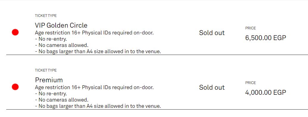 وبالرغم من صيحات رفض حفل ترافيس سكوت، تم نفاد التذاكر خلال ساعتين فقط من طرحها عبر الموقع الإليكتروني بها والتي تراوحت أسعارها بين 4000 و 6500 جنيهًا.