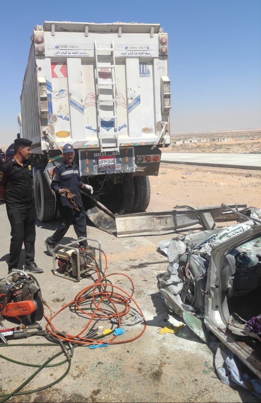 حيث شهد الطريق اصطدام السيارة الملاكي بسيارة النقل في الكيلو 62 بطريق العلمين – القاهرة (اتجاه القاهرة)، وأسفر الحادث عن وفاة قائد المركبة وزوجته و3 من الأطفال.