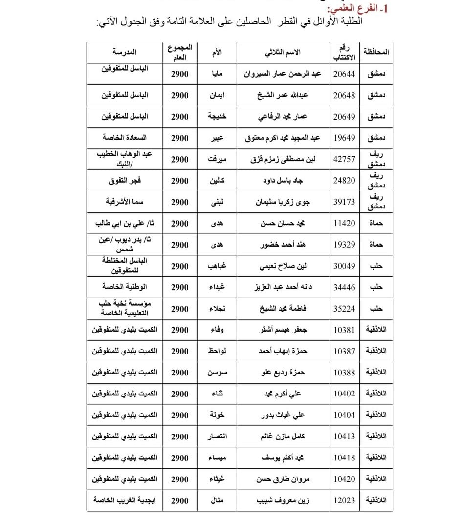 - نتائج البكالوريا 2023 في سوريا حسب الرقم
