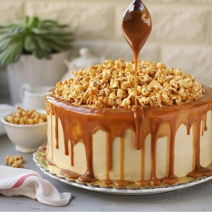 للتزيين: اسكبي صوص الكراميل على الوجه ثم ضعيها في الثلاجة وتقدم.