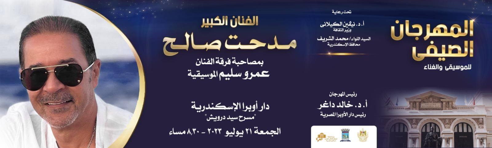 يحيي الفنان مدحت صالح حفله الغنائي المقبل في الإسكندرية، وذلك ضمن فعاليات مهرجان الأوبرا الصيفي الذي انطلق في مختلف فروع الأوبرا.