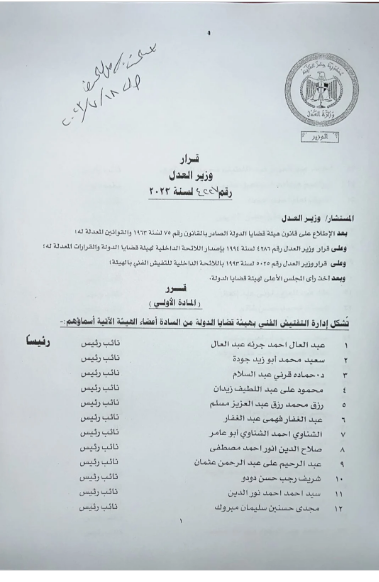 يأصدر المستشارعمر مروان وزير العدل القرار رقم ٤٢٢٧ لسنة ٢٠٢، والخاص بتشكيل إدارة التفتيش الفني لهيئة قضايا الدولة.