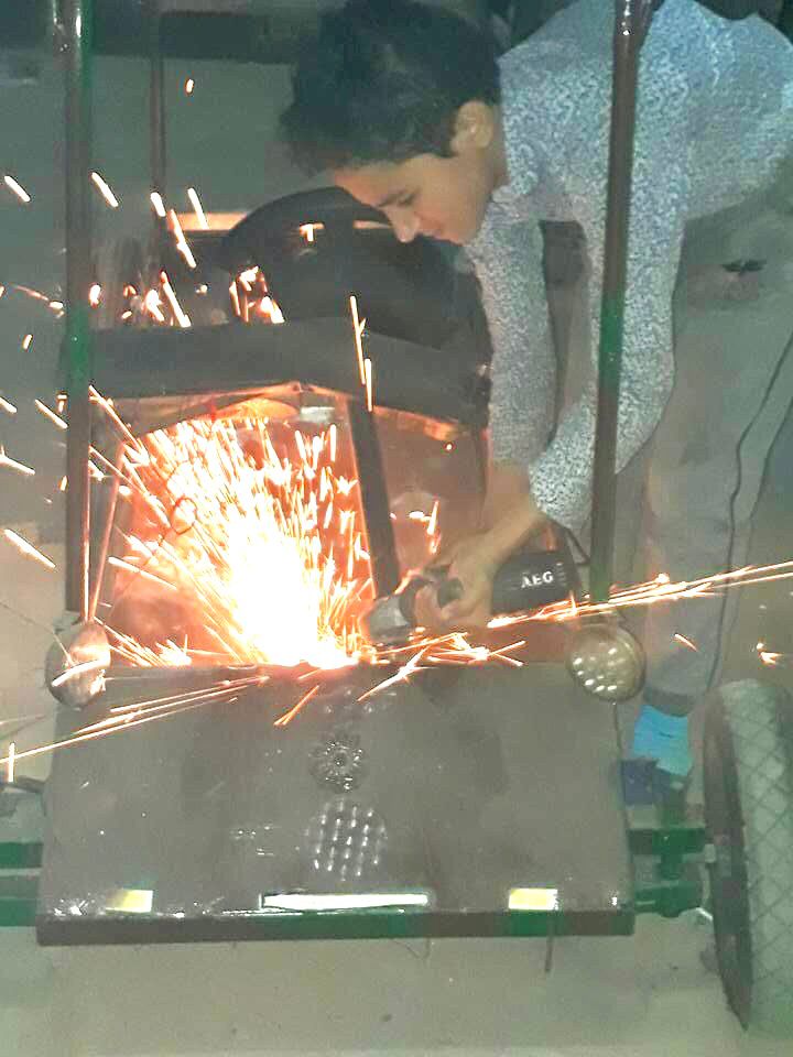 سيارة تعمل بالمياه والملح دون وقود، من خلال استخدام دورة كاملة فى نظام توربينات تولد كهرباء، تساعد على قوة دفع الموتور، وسبب فكرتى كنت أتأثر بعوادم السيارات، بالإضافة إلى أن أسعار السيارات ارتفعت، ففكرت فى اختراع سيارة من خلال تحليل ايونات الماء والملح بإضافة ألواح من الزنك ولوح من النحاس وعدد من الشرائح الكهربائية مع فصل الخليه ل 36 جزءا لإنتاج الطاقة الكهربائية من كل جزء داخل الخلية.