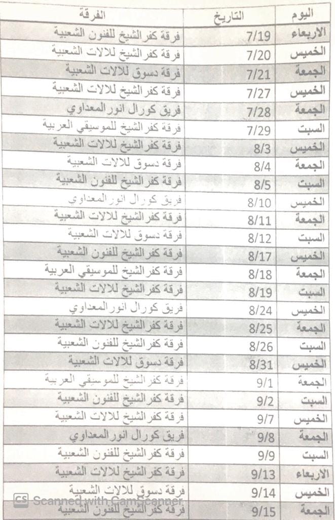 وأكد محافظ كفرالشيخ، أنه سيشارك فى البرنامج العديد من الفرق وهم فرقة كفرالشيخ للفنون الشعبية، وفرقة كفرالشيخ للآلات الشعبية، وفرقة دسوق للآلات الشعبية، وفريق كورال أنور المعداوى، وفرقة كفرالشيخ للموسيقى العربية.