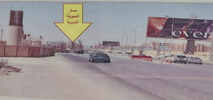 كما قامت الإدارة العامة للمرور بتعيين الخدمات المرورية اللازمة بمحيط الأعمال لإرشاد قائدى المركبات للاتجاهات الجديدة وتركيب اللوحات الإرشادية والتحذيرية بالتنسيق مع الشركة المنفذة للأعمال.