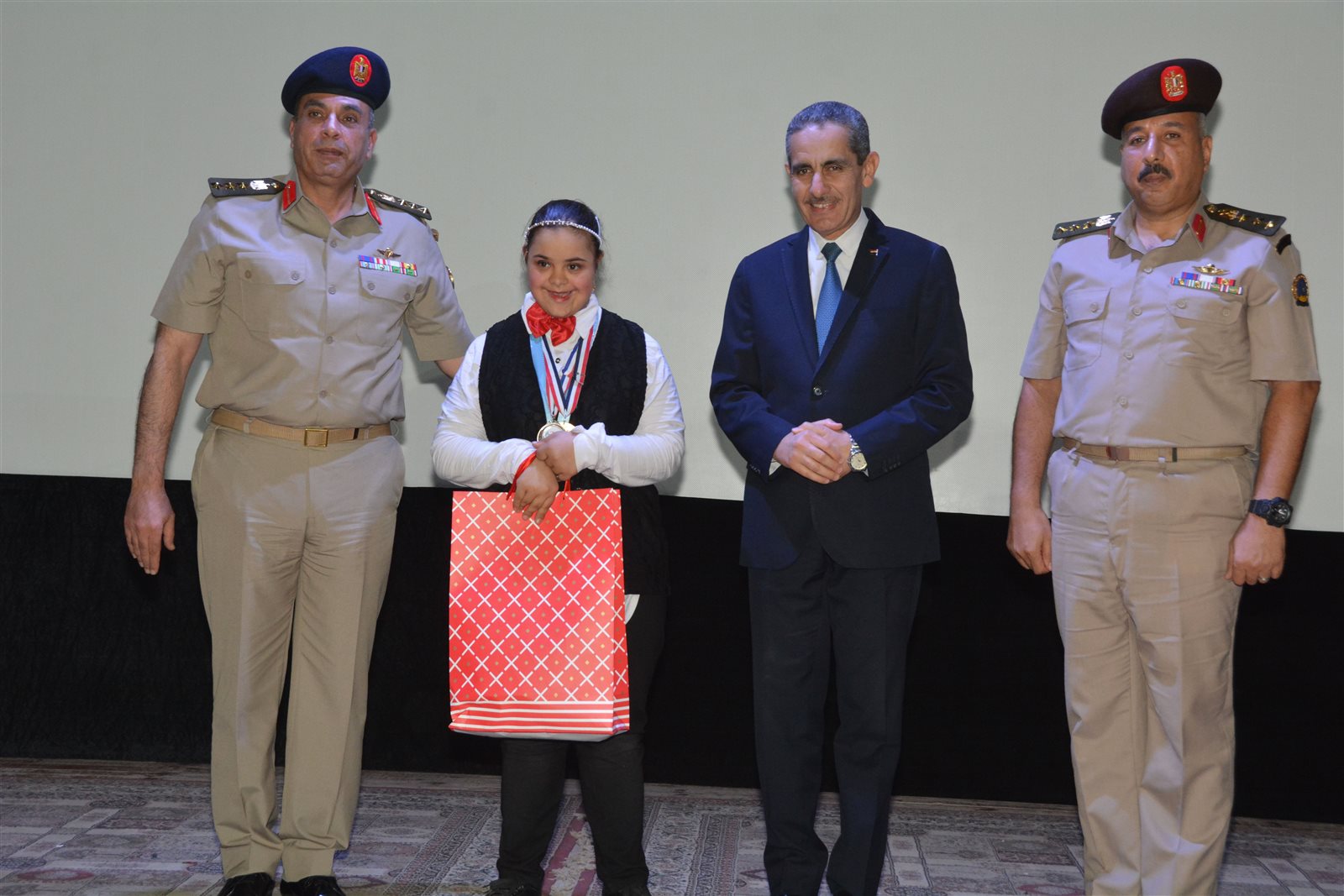 وتضمنت الاحتفالية تقديم فقرات فنية قدمها عدد من الطلبة بوزارة التربية والتعليم والتعليم الفنى، وفى إطار أسرى ومناخ ساده المحبة والاعتزاز بين القوات المسلحة والأبناء من ذوى الهمم تم تكريم الأبناء وتوزيع الهدايا الرمزية عليهم.