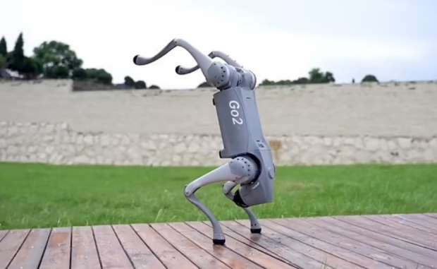 وهذا الكلب الآلي يسمى "Go2" وهو روبوت ذكي رباعي الأرجل يمكنه الرقص والوقوف على يديه، ويعد Go2 ثورة في مجال الروبوتات، وأوضحت الشركة المصنعة لـ"Go2" أن هذا الكلب الآلي ليس فقط متقدمًا في تكوينه ومظهره، ولكنه أيضًا يقدم مجموعة من الوظائف التفاعلية التي تحاكي بشكل مثالي سلوك الكلاب الأليفة الحقيقية، ولم يكن هذا هو أول روبوت على هيئة كلب تصنعه الشركة، حيث إنه كان هناك كلب آليي يسمى " Go1"، وعرض هذا الكلب مهاراته كالقفز بين الصخور وطريقة جريه.