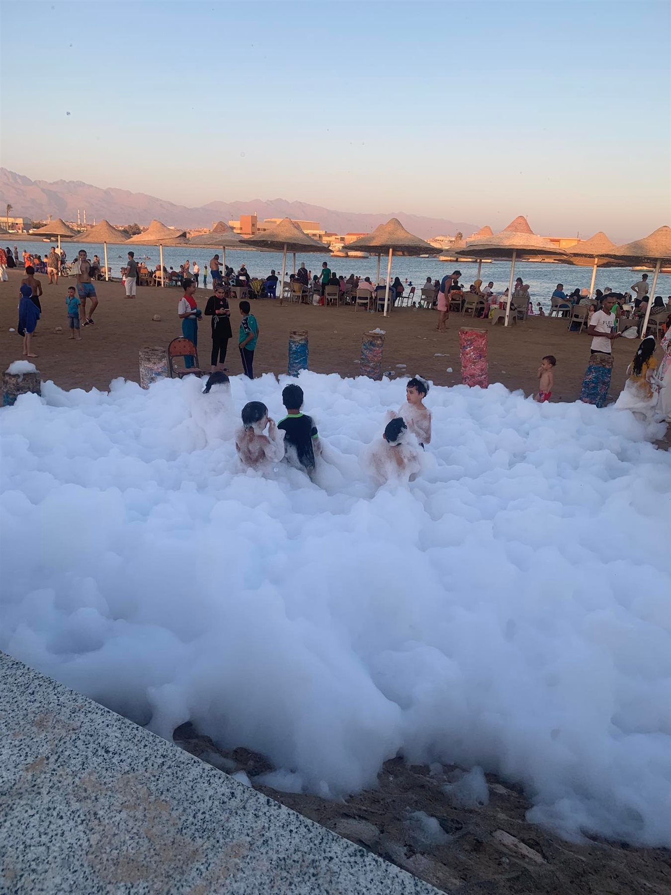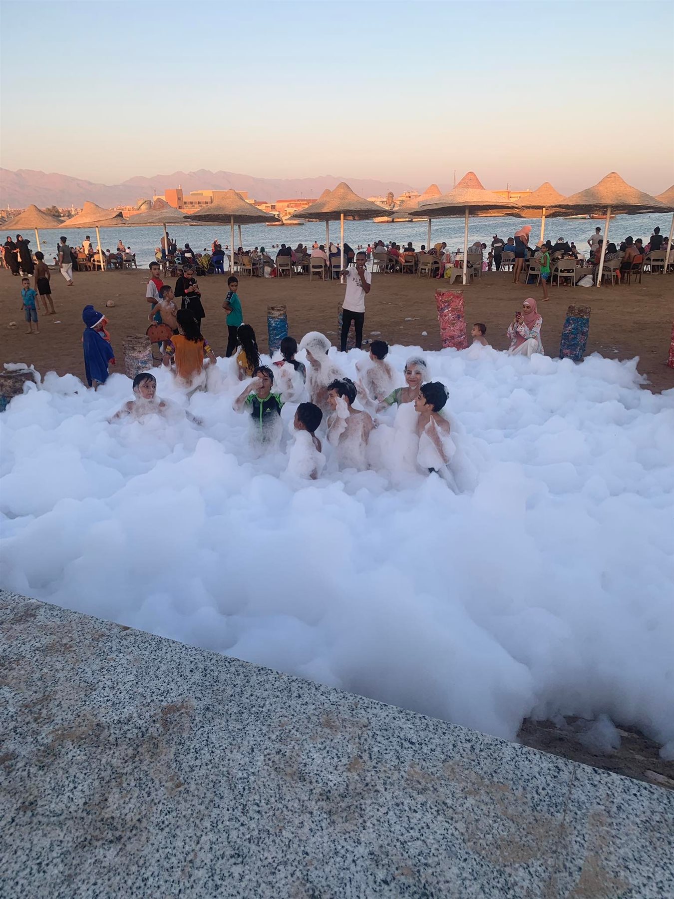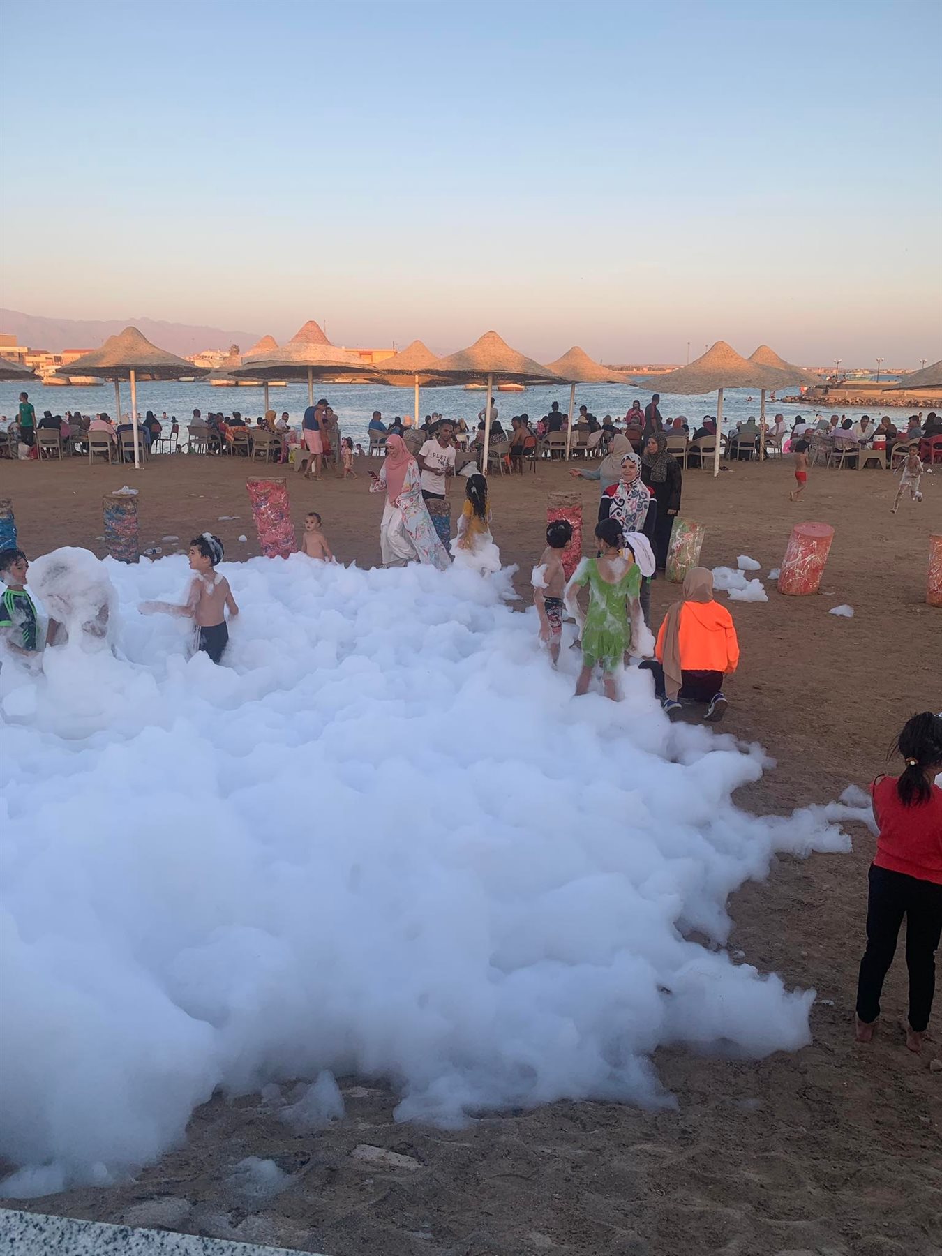 كما شهد أحد شواطئها ولأول مرة "مدفع الفوم" وسط فرحة وتفاعل من الجميع خاصة الأطفال مع التقاط الصور التذكارية، في جو ترفيهي بديع.