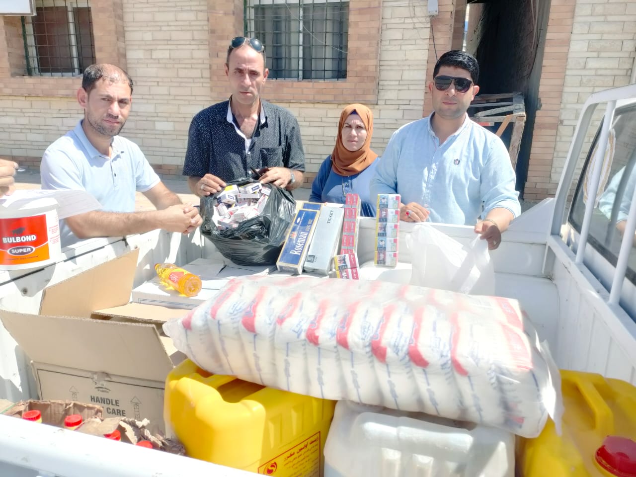 وأسفرت الحملة عن تحرير 5 محاضر سلع غذائية مجهولة المصدر، ومستوردة بدون فواتير ضريبية معتمدة، ومحضرين عدم الإعلان عن أسعار السلع الغذائية المعروضة للبيع وتم التحفظ على 20 كجم سكر حر غير معلن عن أسعاره وبدون فواتير معتمدة، و40 كجم عسل أسود غذائي بدون فواتير معتمدة، و40 كجم زيت طعام أولين غير معلن عن أسعاره وبدون فواتير معتمدة، و15 كجم نفض بويات بدون فواتير معتمدة، و14 غراء بويات بدون فواتير معتمدة، و45 علبة سجائر بدون فواتير معتمدة وغير معلن عن أسعارها، و240 علبة سجائر مستوردة مجهولة المصدر، وذلك بالتنسيق وبالتعاون المشترك مع إدارة الصحة والتموين والطب البيطري.