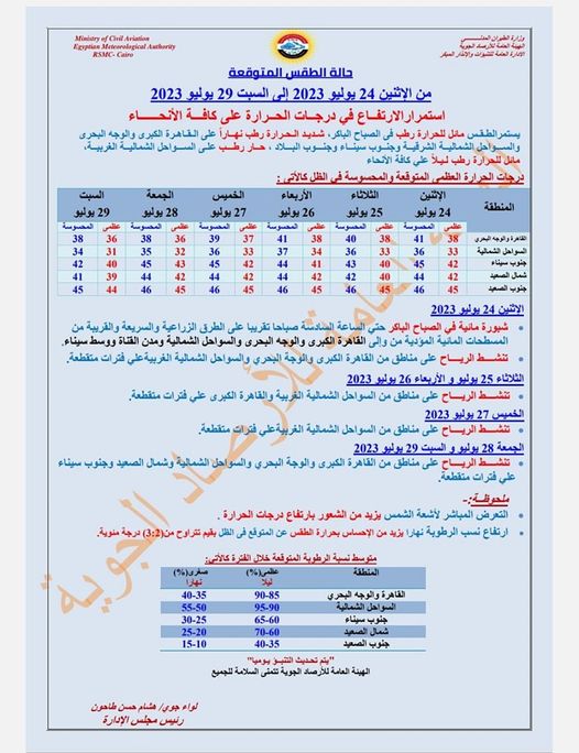 سوهاج العظمى 43 درجة والصغرى 27 درجة.