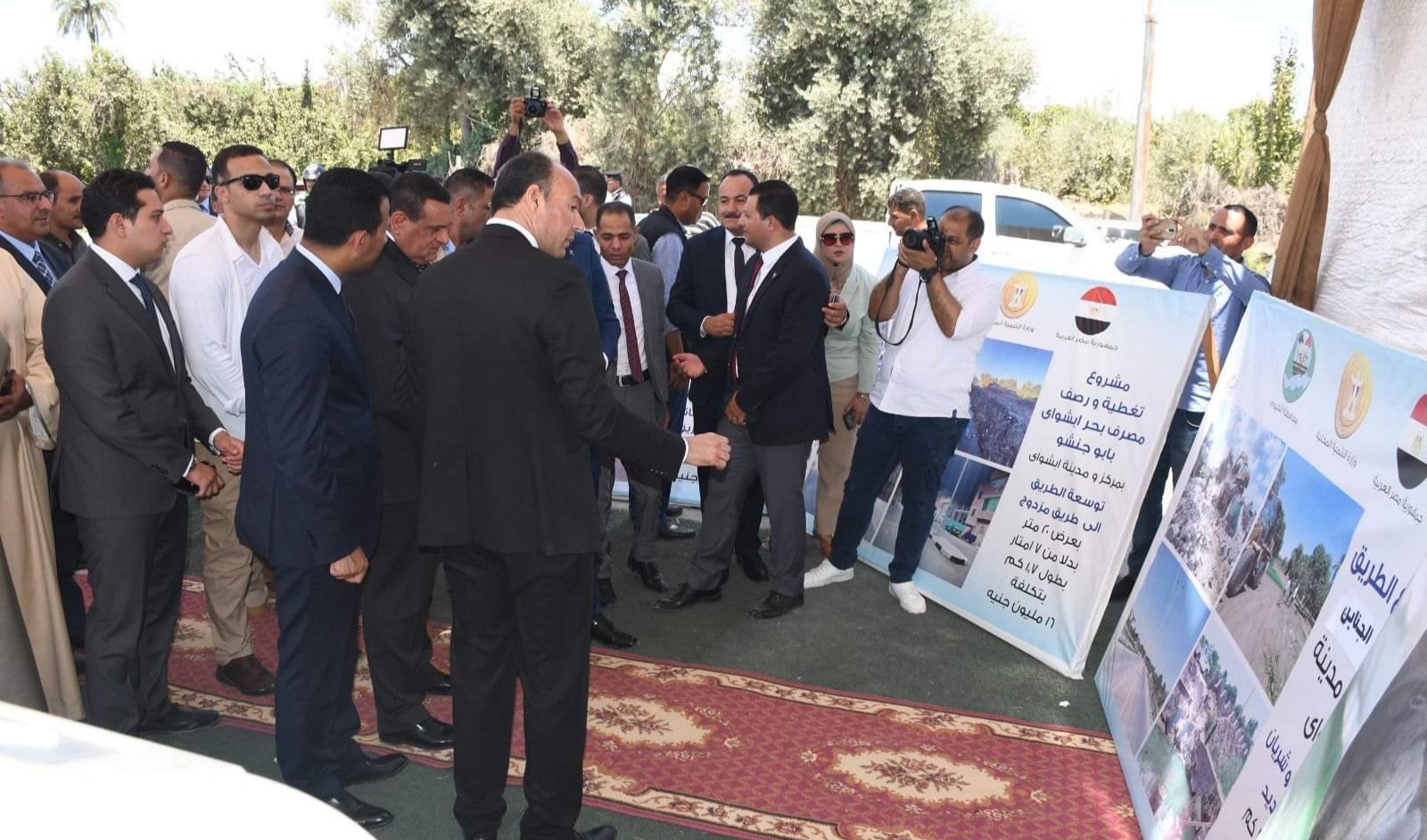 تفقد اللواء هشام آمنة وزير التنمية المحلية، والدكتور أحمد الأنصاري محافظ الفيوم، أعمال رصف طريق "الجناين" أبشواي / جبل سعد، بطول 3.7 كيلو متر، بتكلفة 107 مليون حنيه.