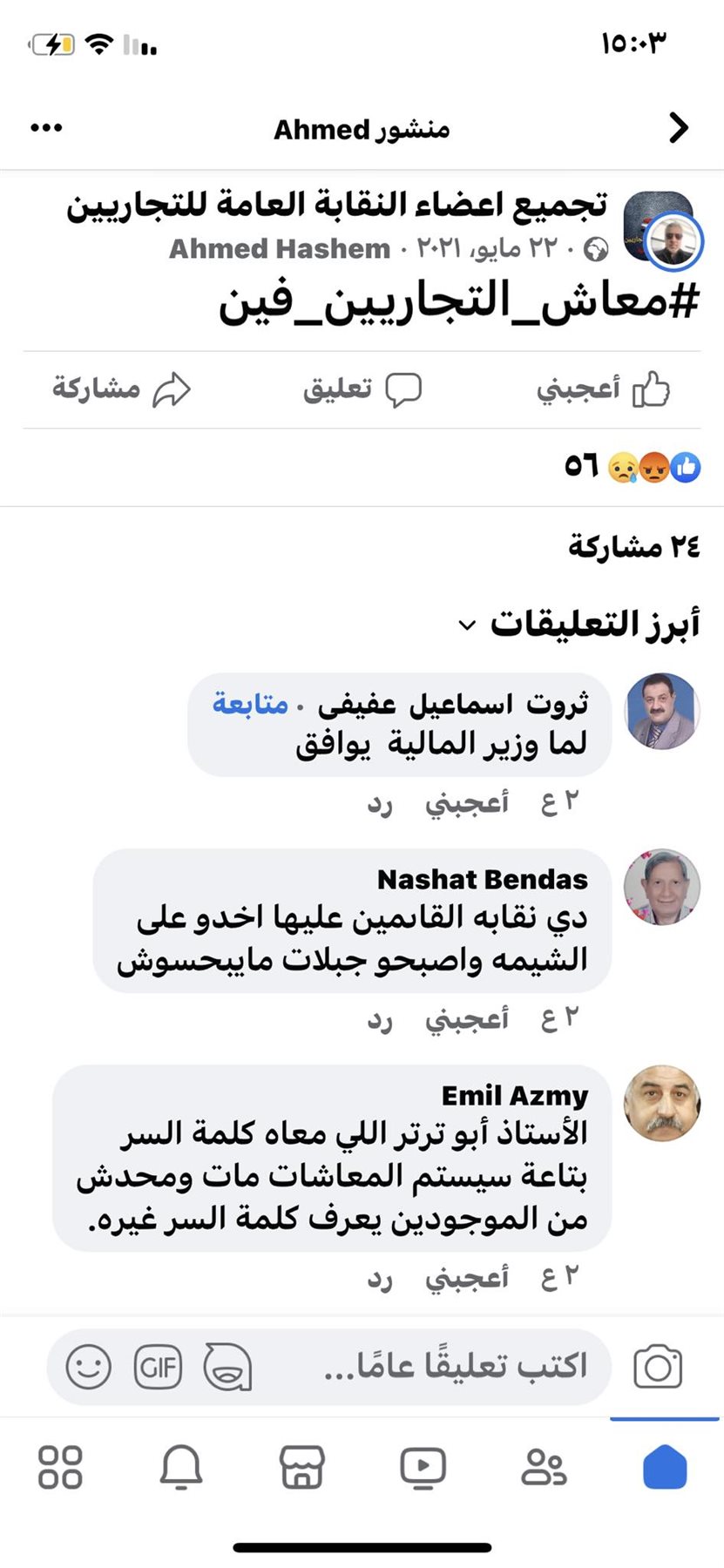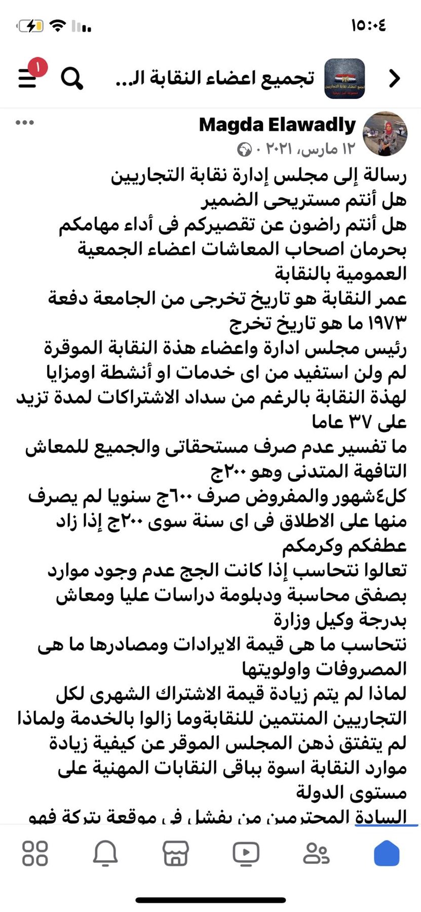 أما في شهر سبتمبر عام 2022، فقد تقدَّمَ النائب محمد عبدالله زين الدين، عضو مجلس النواب، بطلب إحاطة موجه إلى رئيس مجلس الوزراء، بشأن توقف صرف معاشات أعضاء نقابة التجاريين منذ ٩ سنوات.