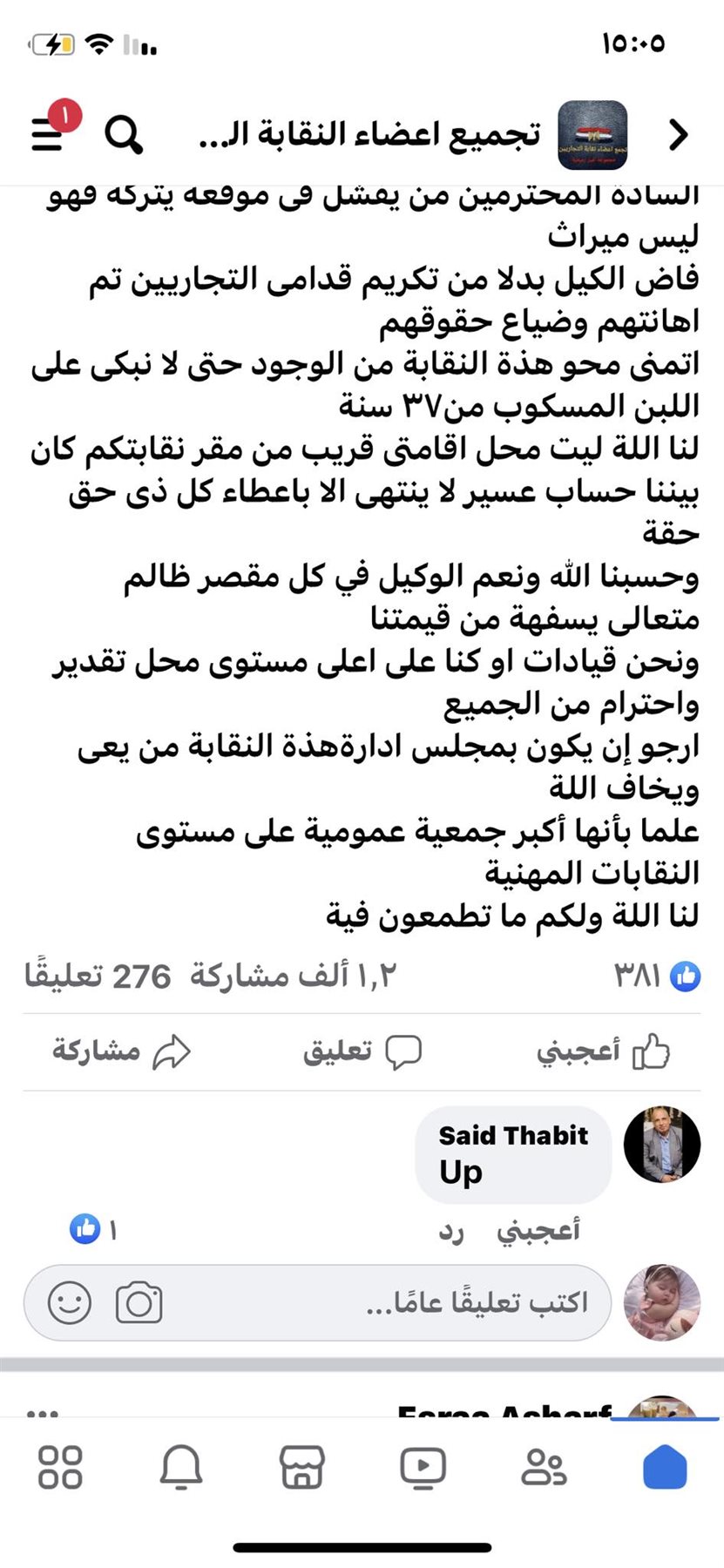 قال زين الدين: "تلقيت الكثير من الشكاوى من أعضاء نقابة التجاريين المتضررين من أوضاع النقابة، إذْ لم تتم إجراء انتخابات مجلس الإدارة أو الجمعية العمومية منذ أكثر من ٣٠ عامًا، مما نتج عنه تعطيل منظومة الإدارة، مشددًّا على ضرورة إعادة النظر في قانون النقابة الحالي لإجراء انتخابات الجمعية العمومية في مواعيدها".