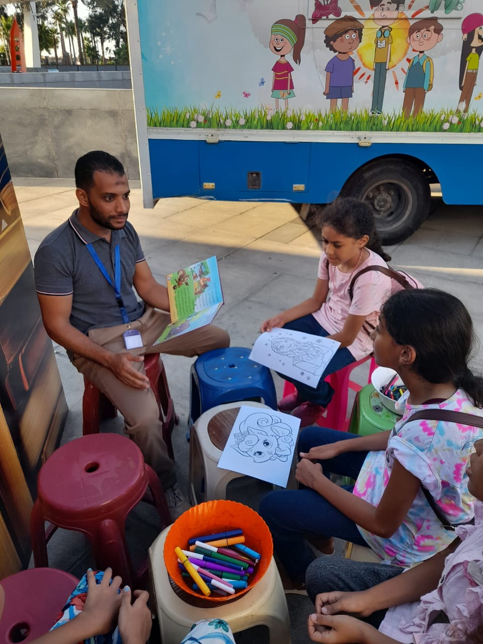 ويأتي ذلك انطلاقا من الدور الخدمي الذي تقدمه المؤسسة من خلال "حكايات على أربع عجلات" على الجانب الثقافي والتوعوي للنشء بطريقة عملية، بمجموعة من القصص والكتب الملونة لتعمل على جذب انتباه الأطفال، ورسم البهجة على قلوب الصغار.