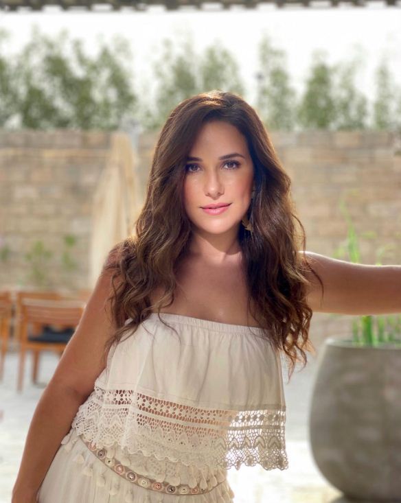 وتفضل دائما تسريحة الشعر الناعمة تاركة خصلاتها منسدلة على طريقة الويفي الواسع ولم تتكلف بوضع المكياج لتكتفي بلمسات هادئة من المكياج والكحل والماسكرا السوداء ولون النود في الشفاه.