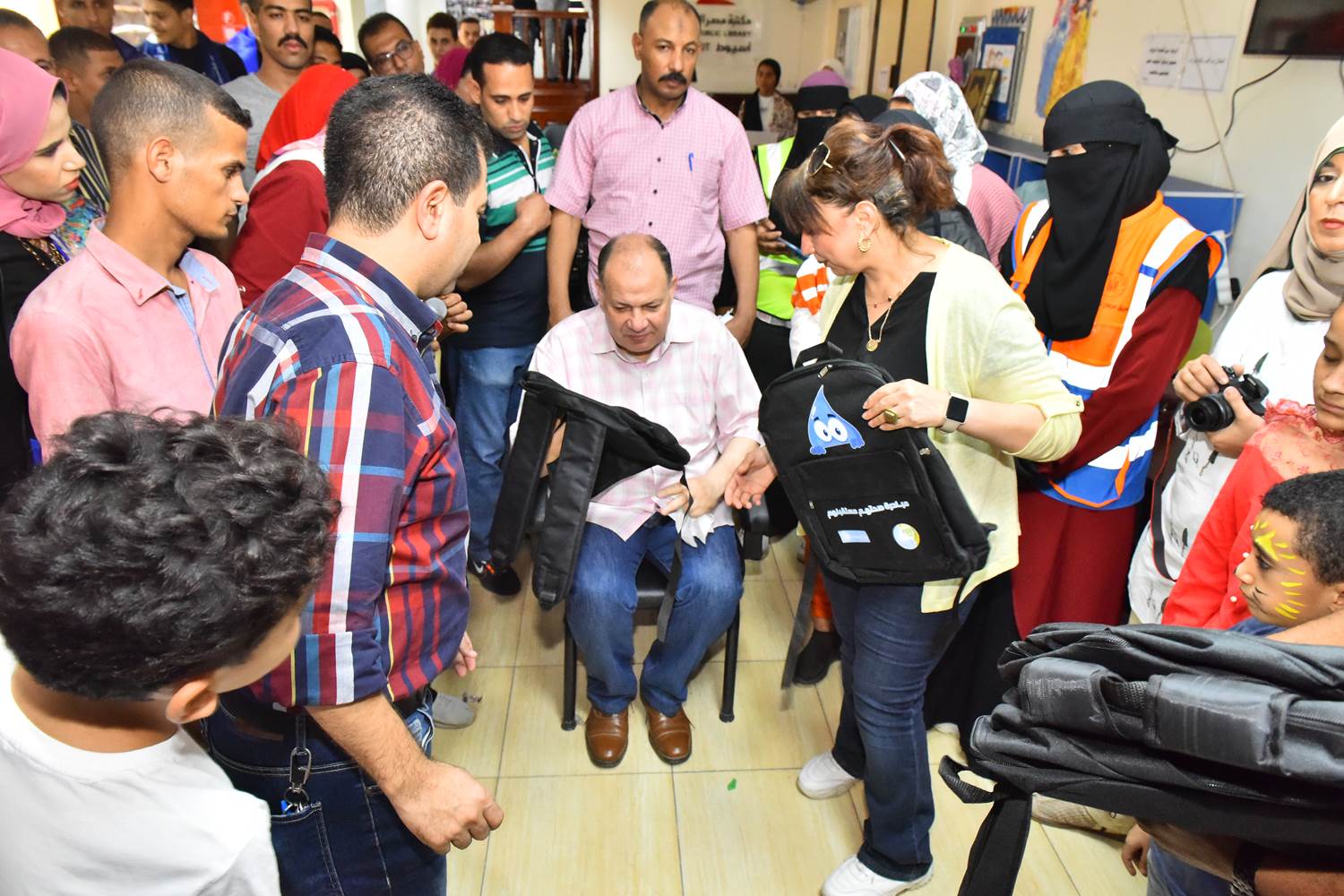 وتفقد المحافظ، الفاعلية الفنية والثقافية التي تم نظمتها المكتبة للأطفال الأيتام من مسرح عرائس وورش للرسم والتلوين وقراءة الكتب وغيرها من الفقرات وحرص المحافظ على التقاط الصور مع الأطفال الأيتام وتوزيع الهدايا والحلوى لإدخال البهجة والسرور عليهم كما وزع حقائب وزجاجات مياه خاصة بمبادرة ترشيد استهلاك المياه وردد مع الأطفال النشيد الوطني لجمهورية مصر العربية رافعين أعلام مصر وأعلام عليها صورة الرئيس السيسي.