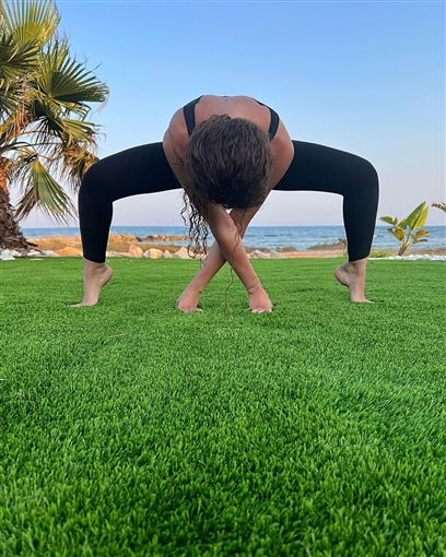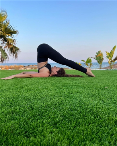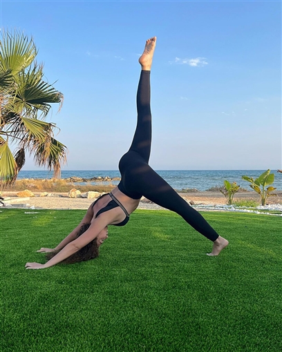 وتألقت ميريام فارس في الصور بالقرب من البحر، في أكثر من وضع من أوضاع اليوجا، مما يعكس معرفتها بهذه الرياضة التأملية.