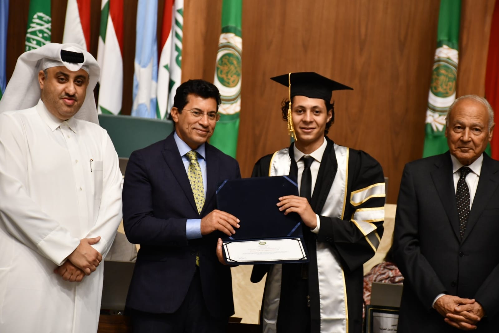 وعلي هامش الحفل قام وزير الشباب والرياضة بتكريم خريجي اول دفعة لكلية الذكاء الاصطناعي بالاكاديمية العربية بالعلمين.