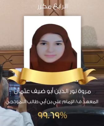هنأ الدكتور أحمد حمادي ، رئيس الإدارة المركزية لمنطقة سوهاج الأزهرية، الطالبة مروة نور الدين أبو ضيف عثمان بمعهد علي بن أبي طالب النموذجي فتيات الحاصلة علي المركز الرابع مكرر علي مستوي الجمهورية بالقسم العلمي بالشهادة الثانوية الأزهرية للعام الدراسي 2022/2023م ، متمنيًا لها مزيدًا من التفوق والتقدم .