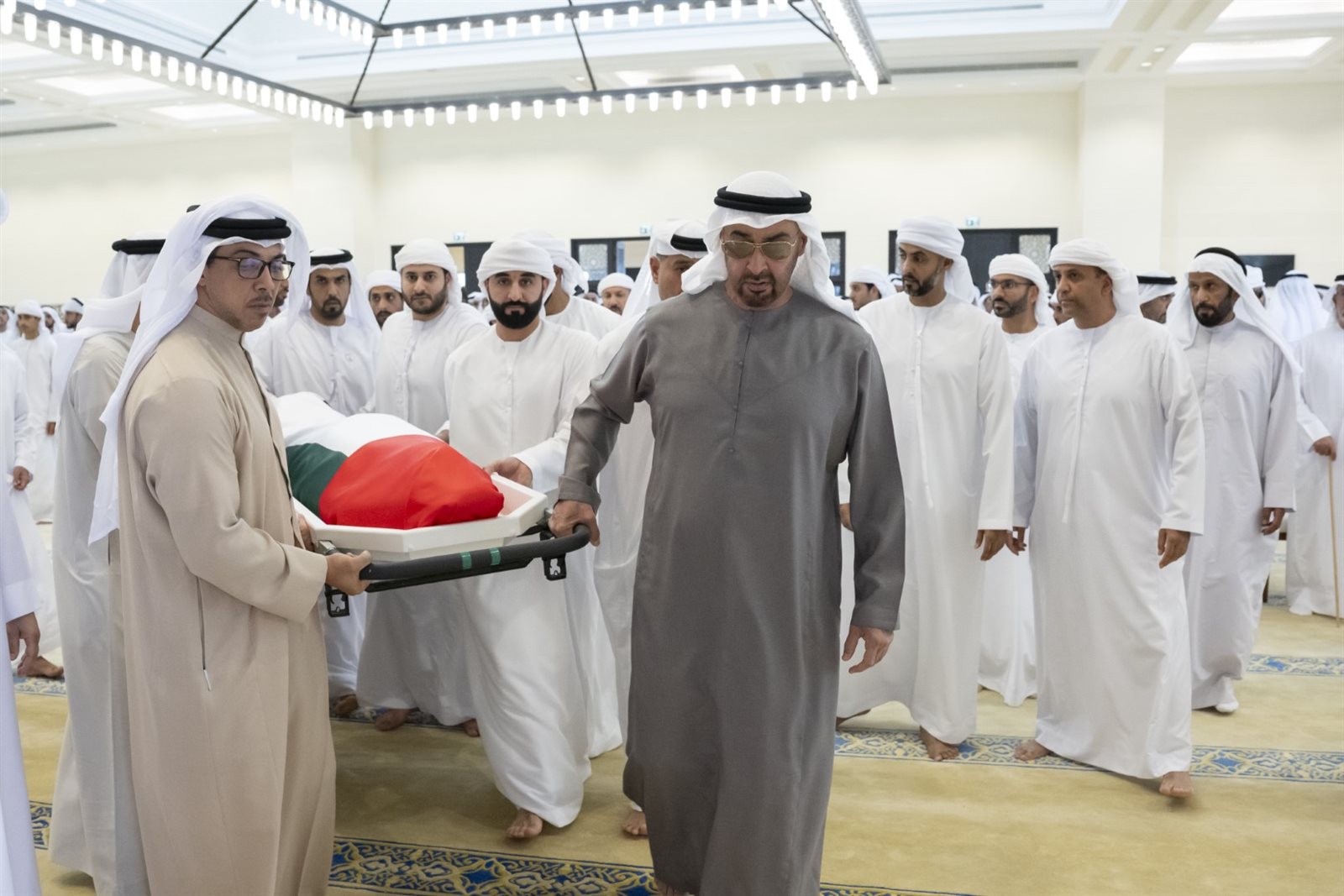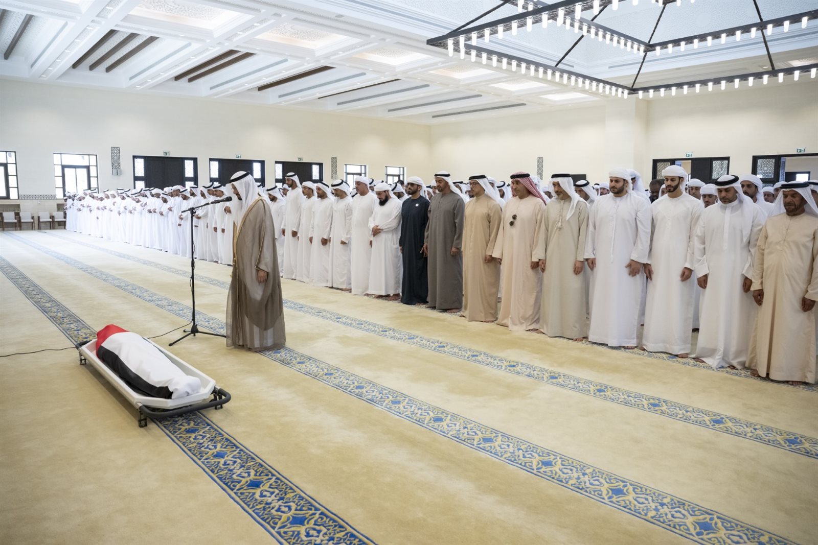 ودعا المصلون المولى عز وجل أن يتغمد الفقيد بواسع رحمته وعفوه ورضوانه ويسكنه فسيح جنانه ويكرم نزله جزاء ما قدمه خلال حياة حافلة بالعطاء والعمل كرسها لخدمة شعبه ووطنه .. سائلين المولى تعالى أن يلهم الجميع جميل الصبر والسلوان في هذا المصاب" وذلك وفق وكالة الأنباء الإماراتية.
