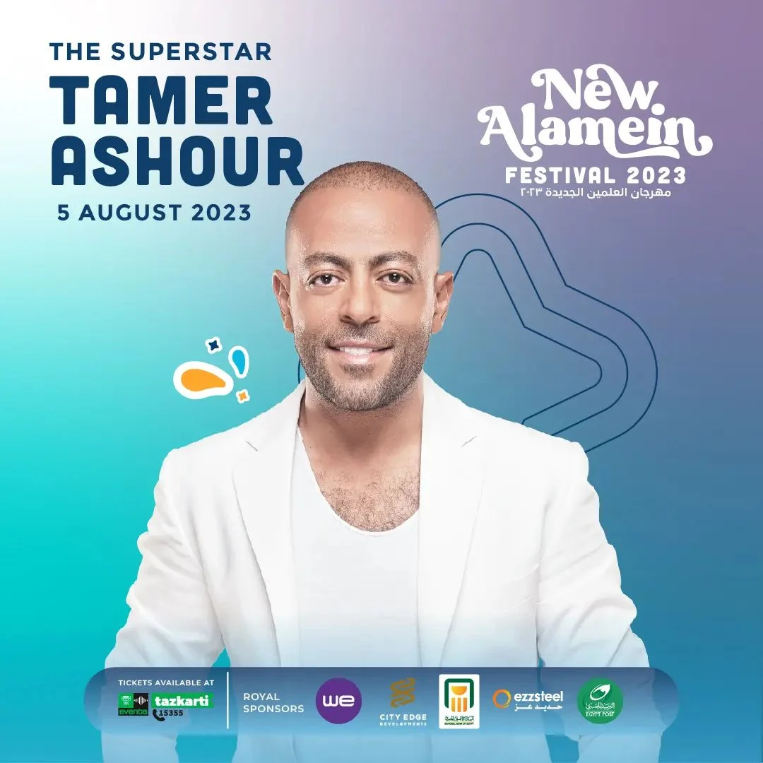 يستعد الفنان تامر عاشور، لإحياء حفل غنائي ضخم يوم 5 أغسطس، في تمام السادسة مساءً، وذلك ضمن فعاليات مهرجان العلمين الترفيهي (العالم علمين) .