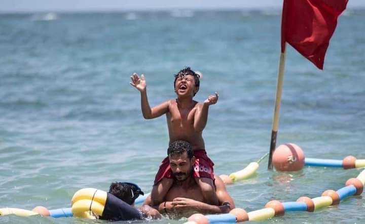 وعكست الصور المتداولة على مواقع التواصل الاجتماعي فرحة الأطفال بنزولهم البحر لأول مرة، من خلال الابتسامة التي على وجهوهم ولعبهم داخل المياه بشكل مبهج.