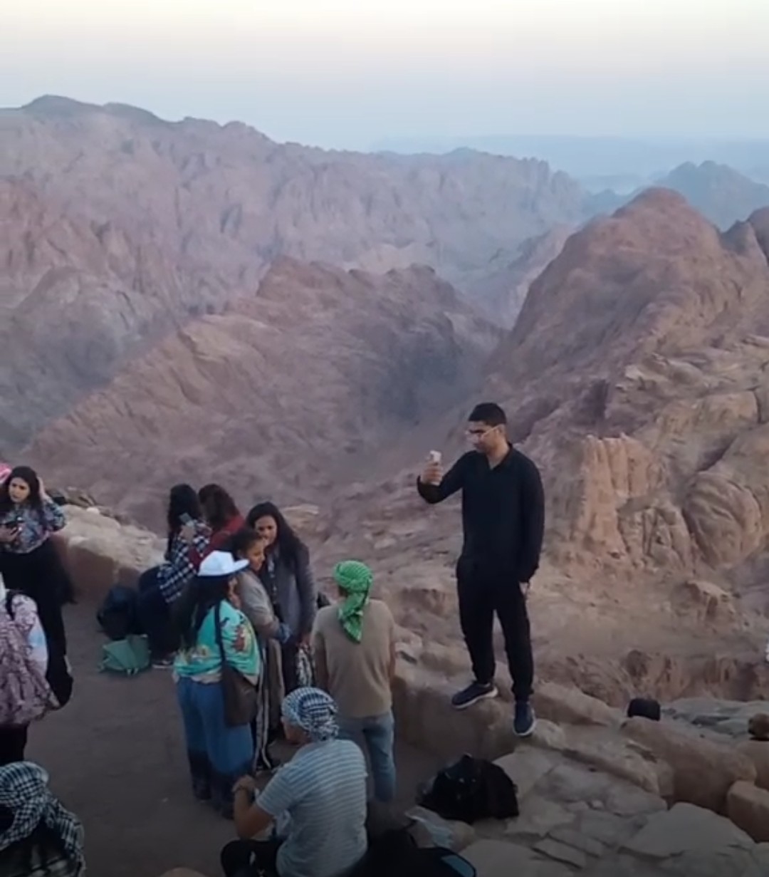 وأضاف محمد فتيح من شباب سانت كاترين، أن مشهدا رائعا عندما يتجمع السياح من مختلف الجنسيات في ملتقى الأديان علي قمة جبل موسي لمشاهدة شروق الشمس والاستمتاع بطقس رائع ودرجة حرارة لا تزيد عن ٢٠ درجة في قمة جبل موسى.