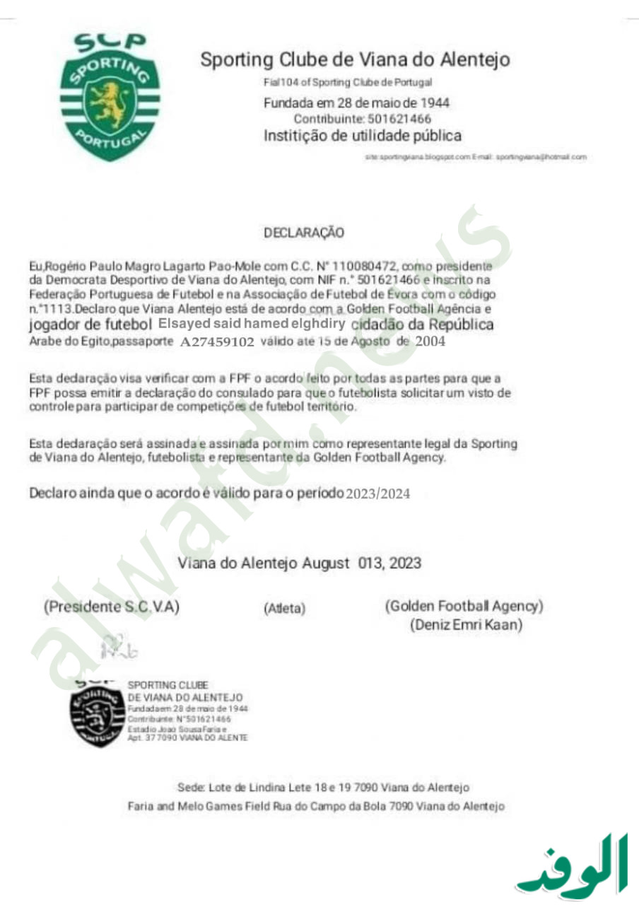 حصلت بوابة الوفد الإلكترونية على خطاب المرسل من "نادي سبورتنج" لنادي الزمالك، بشأن اللاعب السيد الغديري.