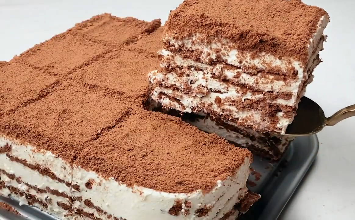 وزعي كمية مناسبة من خليط الكريمة فوق طبقة البسكويت.