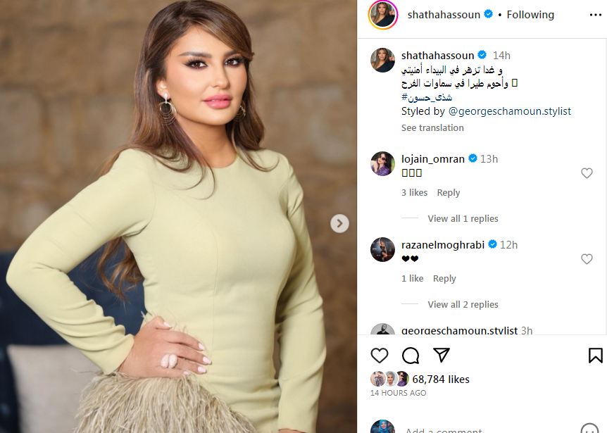 تنجذب النجمة المغربية شذى حسون للبساطة والرقه في أختيار أزيائها التي تتسم بالاحتشام والنعومة وهذا ما جعلها محط اهتمام وإعجاب المعنيين بالموضة.