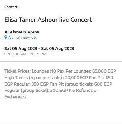 وتتراوح أسعار التذاكر بين 300 - 56000 جنيه (بحد أدنى 10 أشخاص)، وتم طرحها عبر الموقع الإليكتروني الخاص بها.