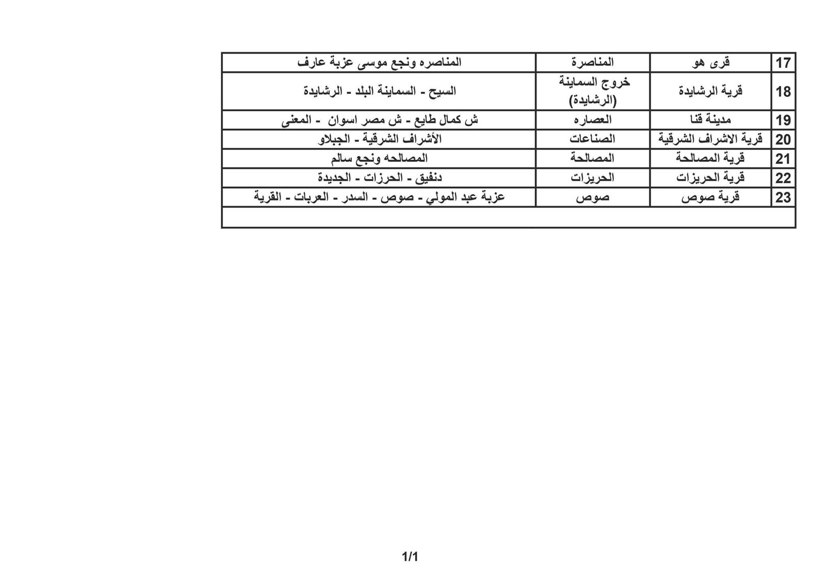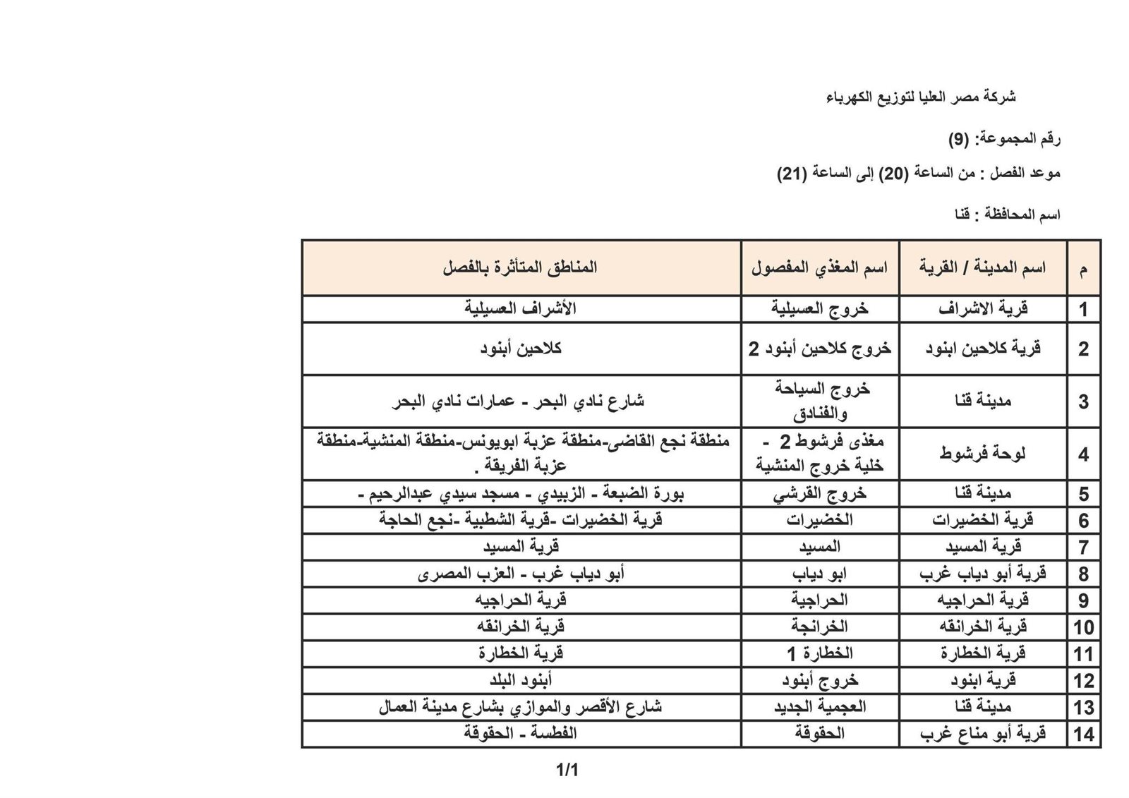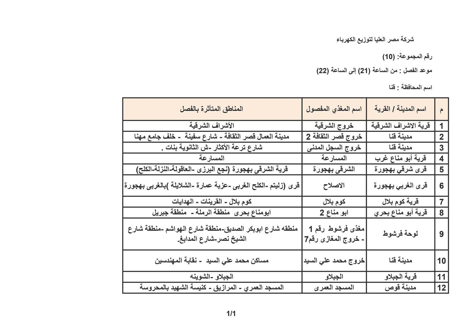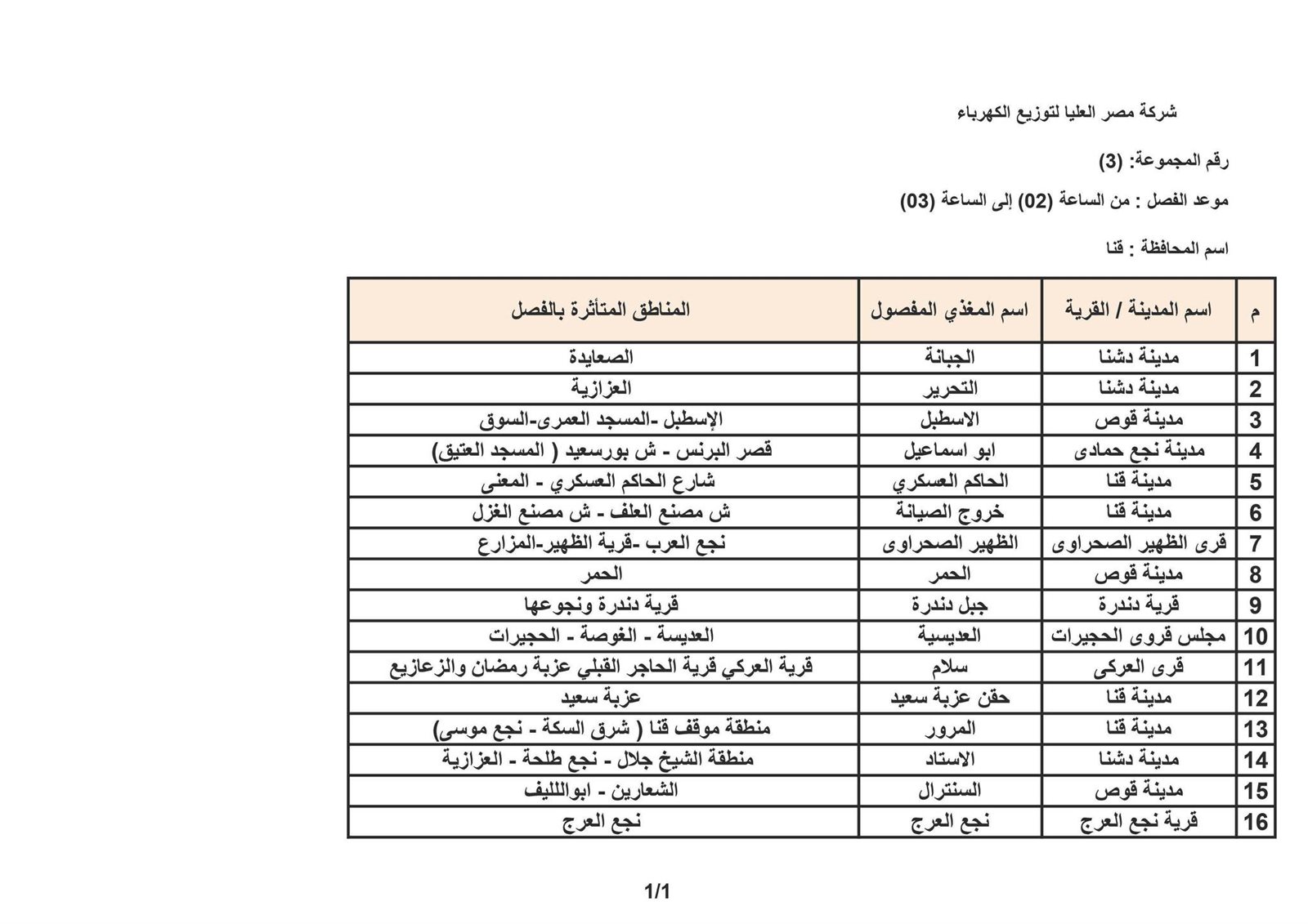 وتم تقسيم جدول قطع الكهرباء بمحافظة قنا على 12 مجموعة: