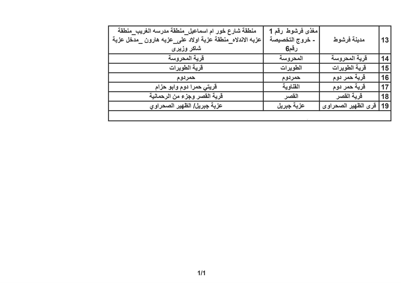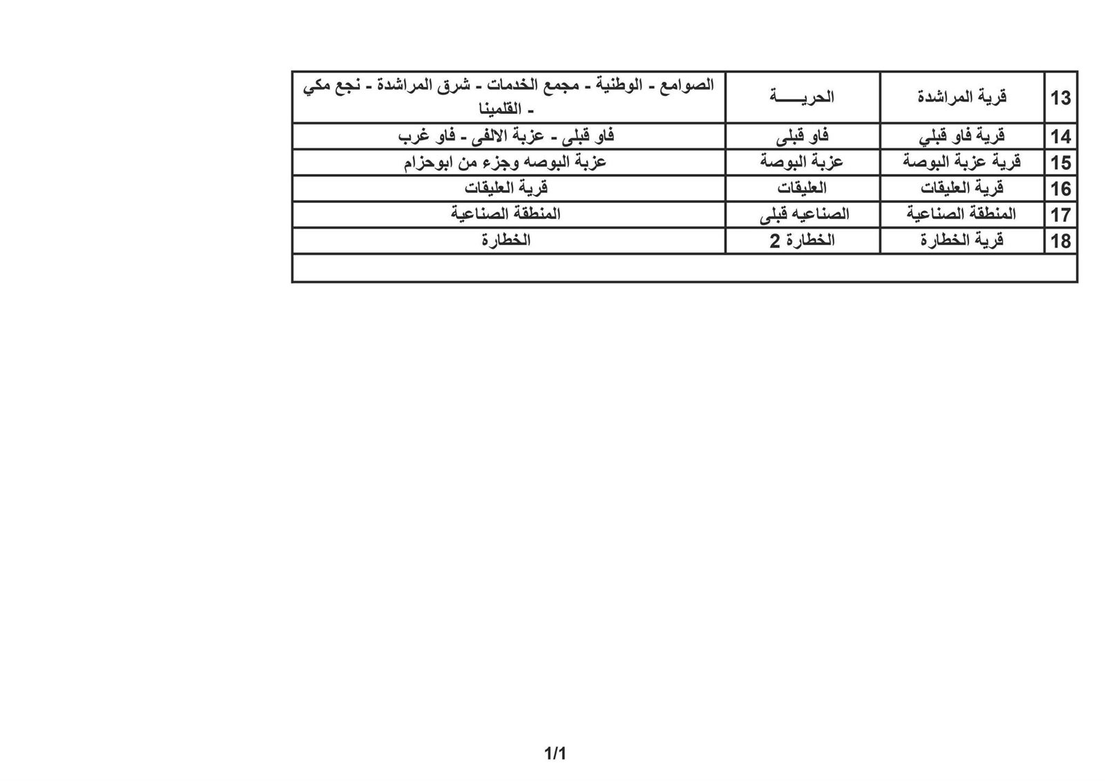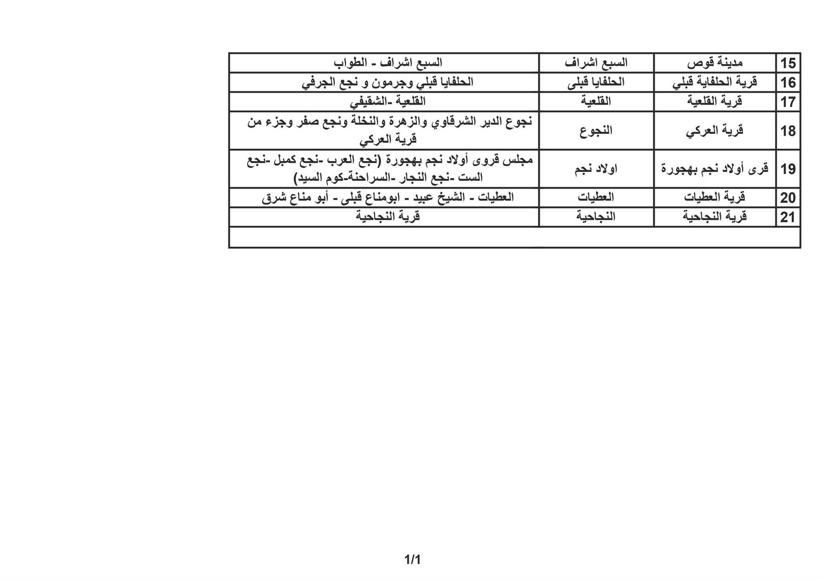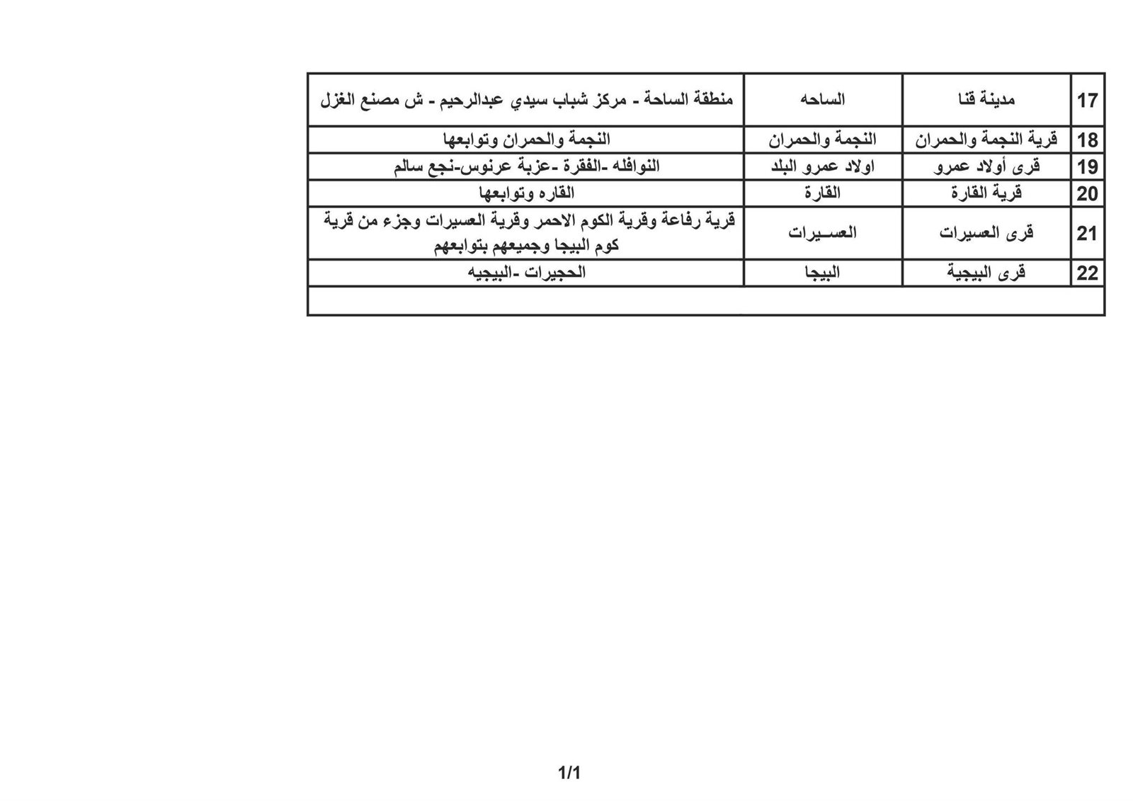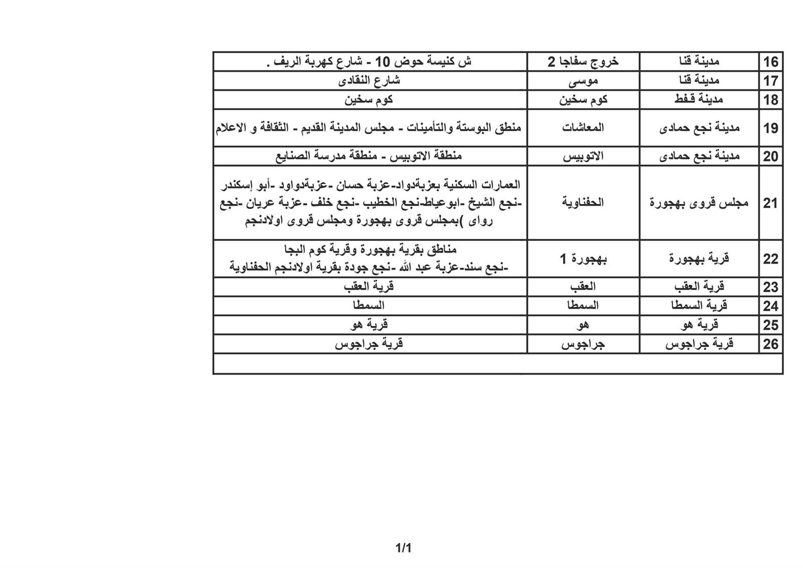 وتم تقسيم جدول قطع الكهرباء بمحافظة قنا على 12 مجموعة: