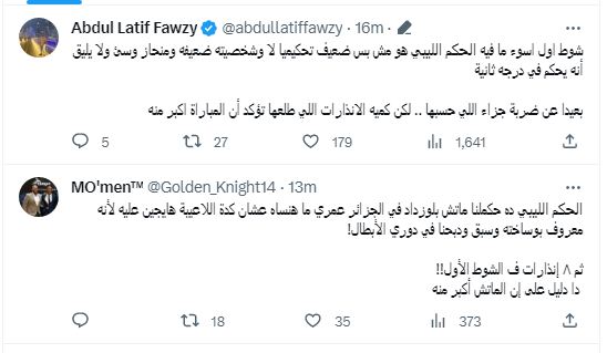 شنت جماهير نادي الزمالك على منصات التواصل الاجتماعي هجوما قويا على الحكم الليبي عبد الواحد حريويدة الذي يدير لقاء الفريق ضد الشباب السعودي في البطولة العربية للأندية.