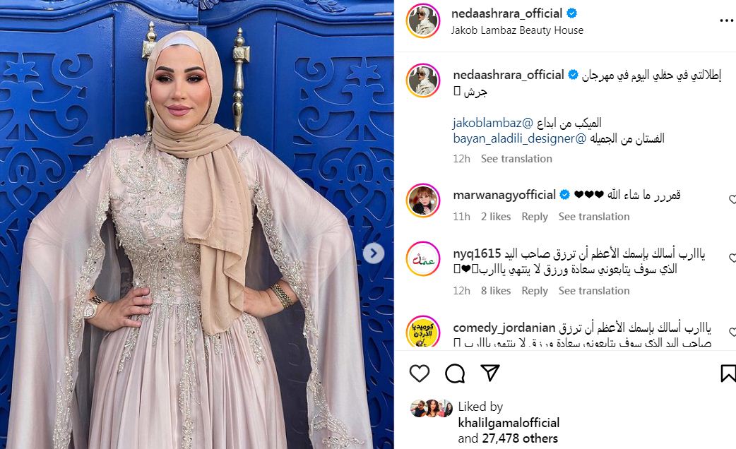 نجحت النجمة الأردنية نداء شرارة في جذب الانتباه لإطلالتها الساحرة التي تتسم بالفخامة والاحتشام في آن واحد بأسلوب مواكب لأحدث صيحات الموضة لتؤكد للجميع أن الاحتشام لم ينقص من أناقتها بل زادها جمالًا.
