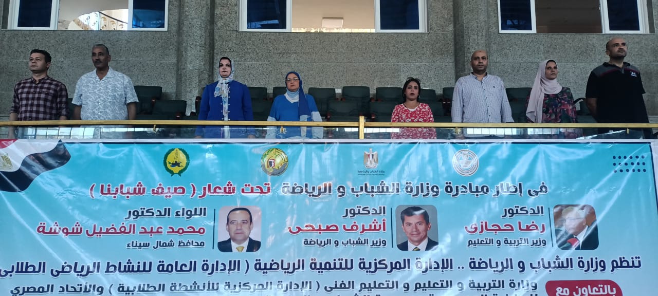 واصلت وزارة الشباب والرياضة من خلال الإدارة المركزية للتنمية الرياضية (الإدارة العامة للنشاط الرياضي الطلابي) تنفيذ فعاليات اليوم الرياضي الترويحي لتلاميذ المدارس بالمناطق الحدودية ، بالصالة المغطاة بالعريش ,بمحافظة شمال سيناء ، بالتعاون مع وزارة التربية والتعليم والتعليم الفني والاتحاد المصري للرياضة المدرسية، مديرية الشباب والرياضة بالمحافظة، وذلك ضمن مبادرة "صيف شبابنا".