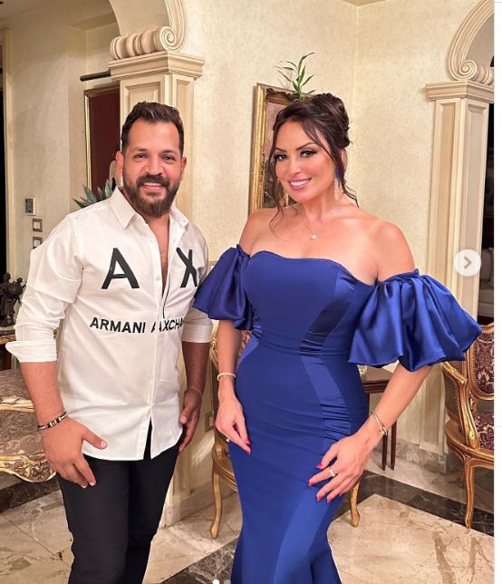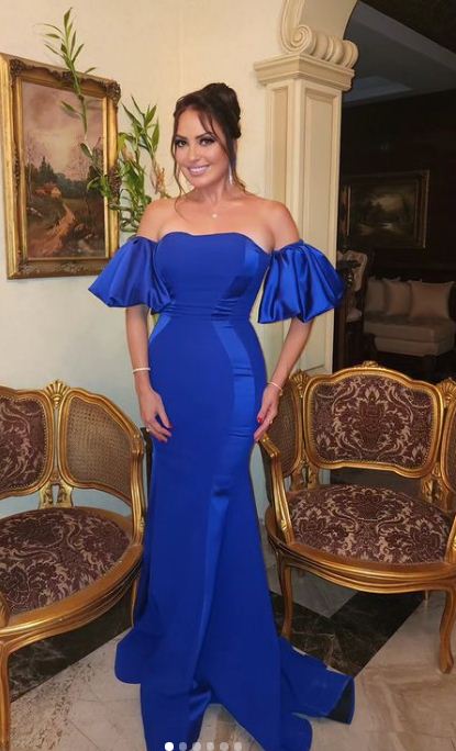 وتألقت نرمين الفقي بإطلالة ساحرة مفعمة بالنعومة والأنوثة في آن واحد، حيث ارتدت فستانا طويلا مجسما، ينتمي لقصة الأوف شولدر، صمم من قماش الساتان باللون الكحلي الغامق، عكس الفستان قوامها الممشوق ووزنها المثالي.
