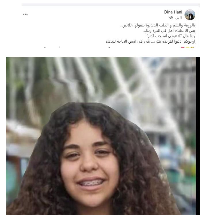 وفيما  كتبت والدة الفتاة،" بالورقة والقلم و الطب الدكاترة بيقولوا خلاص...بس انا عندى امل فى قدرة ربنا...ربنا قال "ادعونى استجب لكم"ارجوكم ادعوا لفريدة بنتى... هى فى امس الحاجة للدعاء".
