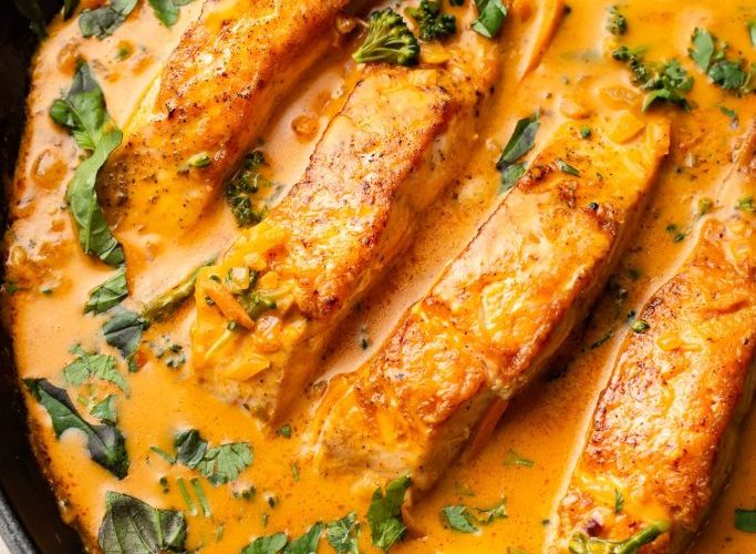 سلمون بالكاري وحليب جوز الهند.. غنية بالبروتينات
