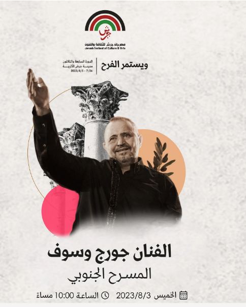 يلتقي سلطان الطرب جورج وسوف، الليلة، مع جمهوره الأردني في حفل غنائي جديد ضمن فعاليات مهرجان جرش للثقافة والفنون في دورته الـ37.
