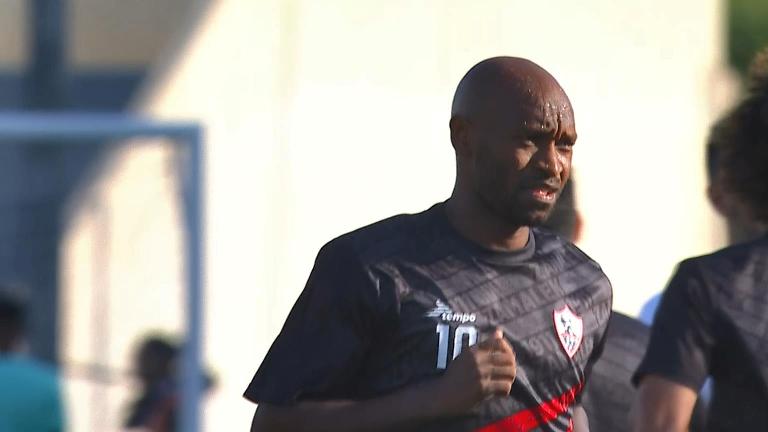 الزمالك يؤدي عمليات الإحماء قبل ملاقاة النصر السعودي