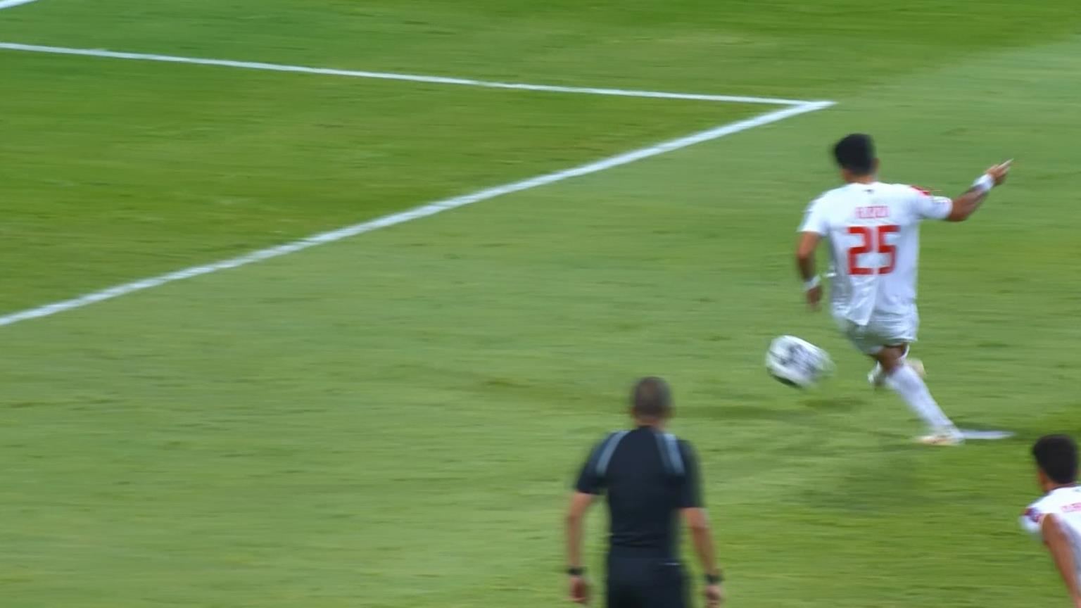 و حصل حمزة المثلوثي على بطاقة صفراء بعد تدخل قوي على ماني.